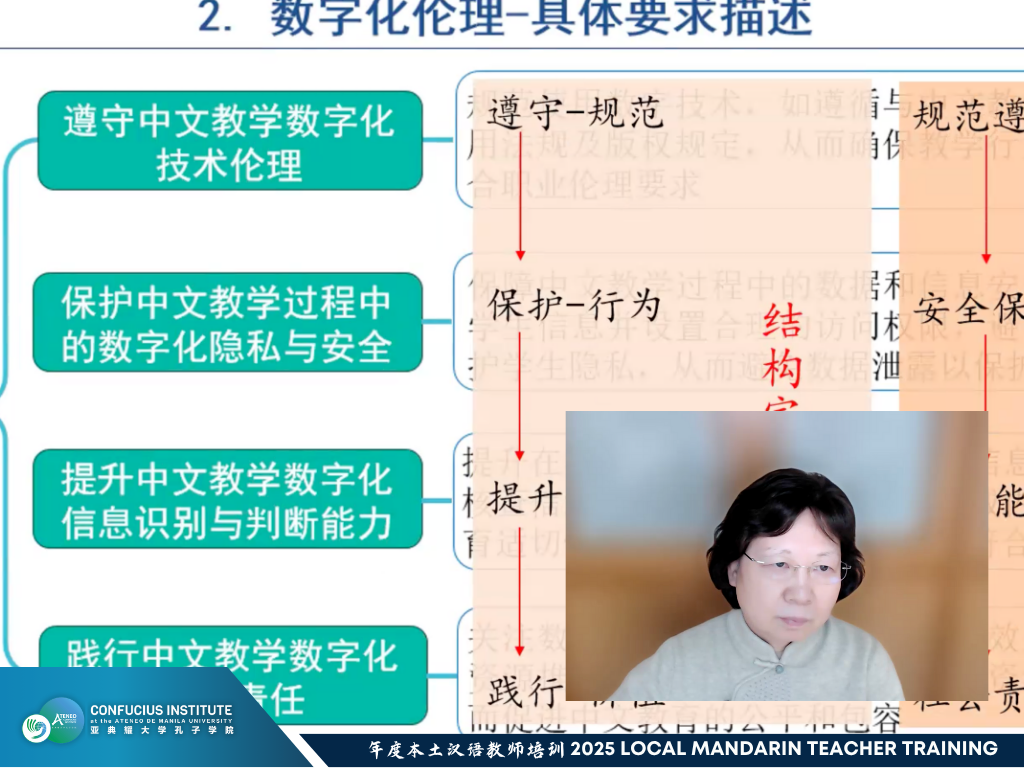 On the second day, Prof. Zheng Yanqun from Beijing Language and Culture University delivered her lecture online via Zoom, focusing on Strategies, Technologies, and Applications in International Chinese Intelligence and Digitalized Teaching. She demonstrated how digital platforms, AI-powered teaching tools, and emerging instructional technologies can enhance classroom interactivity, real-time language assessment, and personalized learning pathways for students in the digital era.