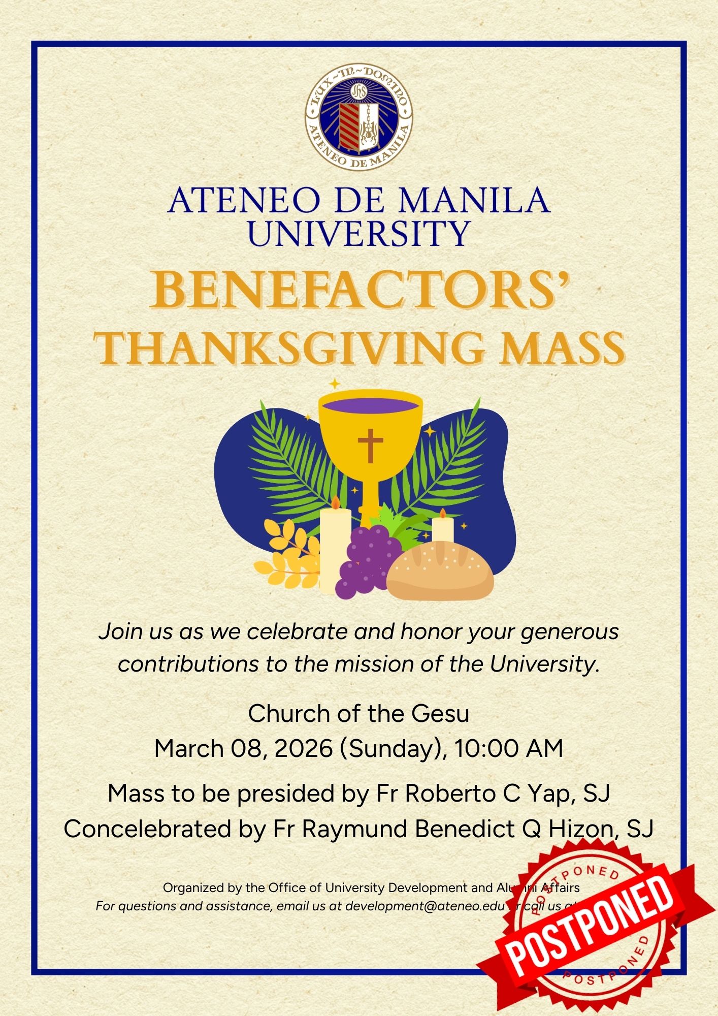 Your understanding and patience at this time are most appreciated. We look forward to seeing you as we gather in gratitude and celebrate the enduring partnership between Ateneo and you, our cherished benefactors.