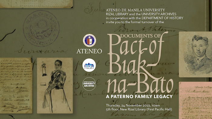 The Documents of Pact of Biak-na-Bato are part of the Collection that is being made available by the Paterno Family to promote the study and appreciation of history among the Filipino youth. The Paterno Family Collection will be preserved at the Rizal Library and the University Archives, and will soon be available online and onsite for faculty, students, and researchers from the Ateneo community and elsewhere.
