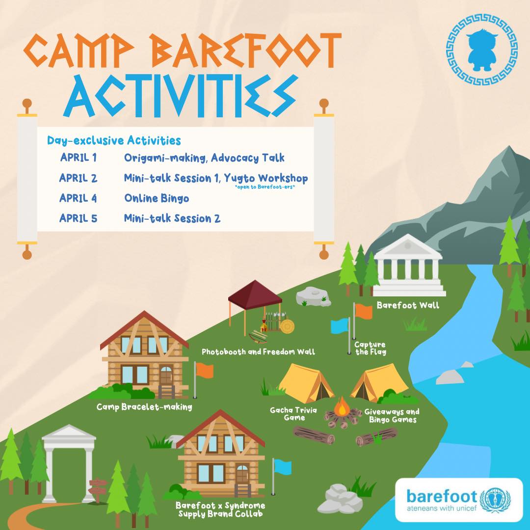 Drop by our booth located at LS Doghouse/Zen garden starting April 1 to April 5 to get a chance to meet your fellow campers and discover what Camp Barefoot is really all about
