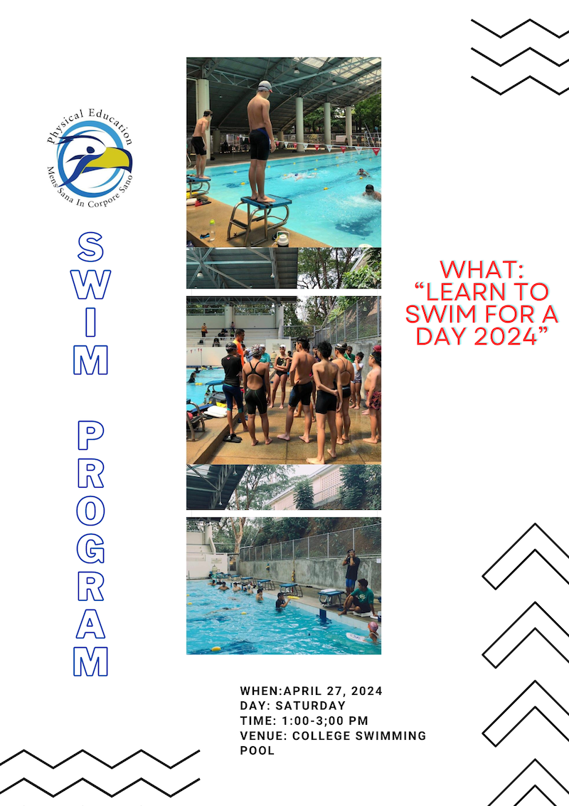 With the return of the Physical Education's Swim Program, we would like to give back, and share the passion of swimming, and life skill learning. May we invite you to sign up for our Swim Program’s Learn-To-Swim For a Day.