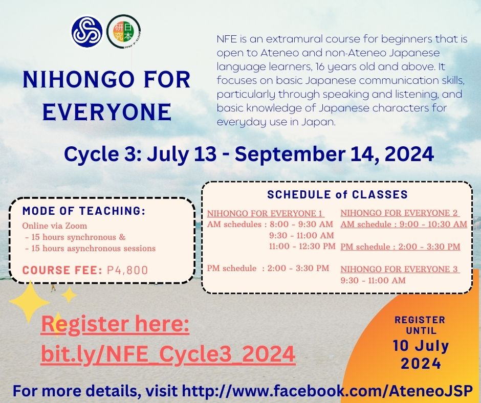Basic Japanese language courses for Ateneo and non-Ateneo learners, 16 years old and older