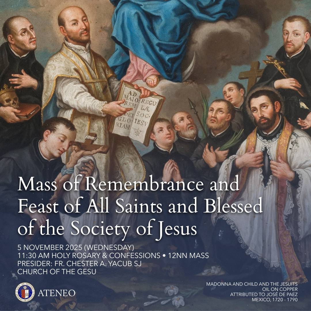 As one community, let us celebrate the Holy Eucharist to remember our faithful departed and all the Saints and Blessed of the Society of Jesus on 5 November 2025 (Wednesday), 12noon at the Church of the Gesù. Father Chester A. Yacub, SJ will be our presider and homilist.