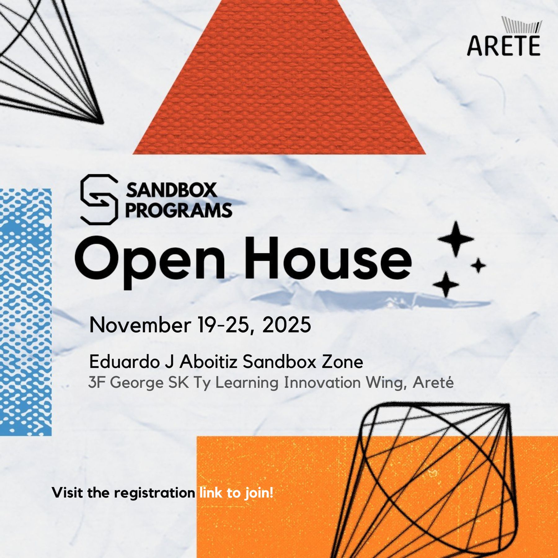 The Sandbox Open House highlights Areté’s thrust towards innovation, as well as its mission to showcase creativity at work in the arts and sciences. It allows the public at large to see the efforts of the different teams working under the Sandbox Programs in addressing important issues through collaboration and experimentation.