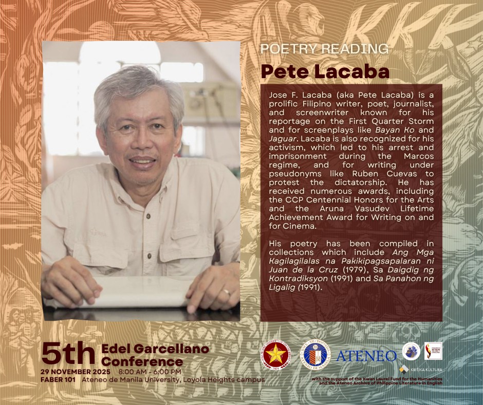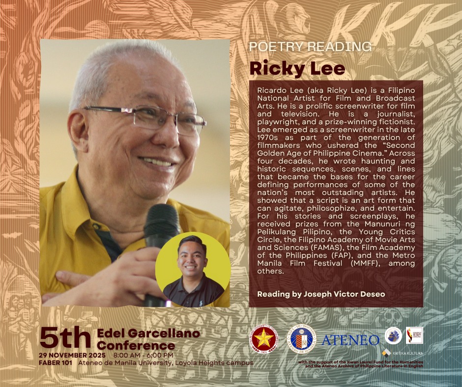 - Special Poetry Readings: Pete Lacaba and National Artist for Film and Broadcast Arts Ricky Lee