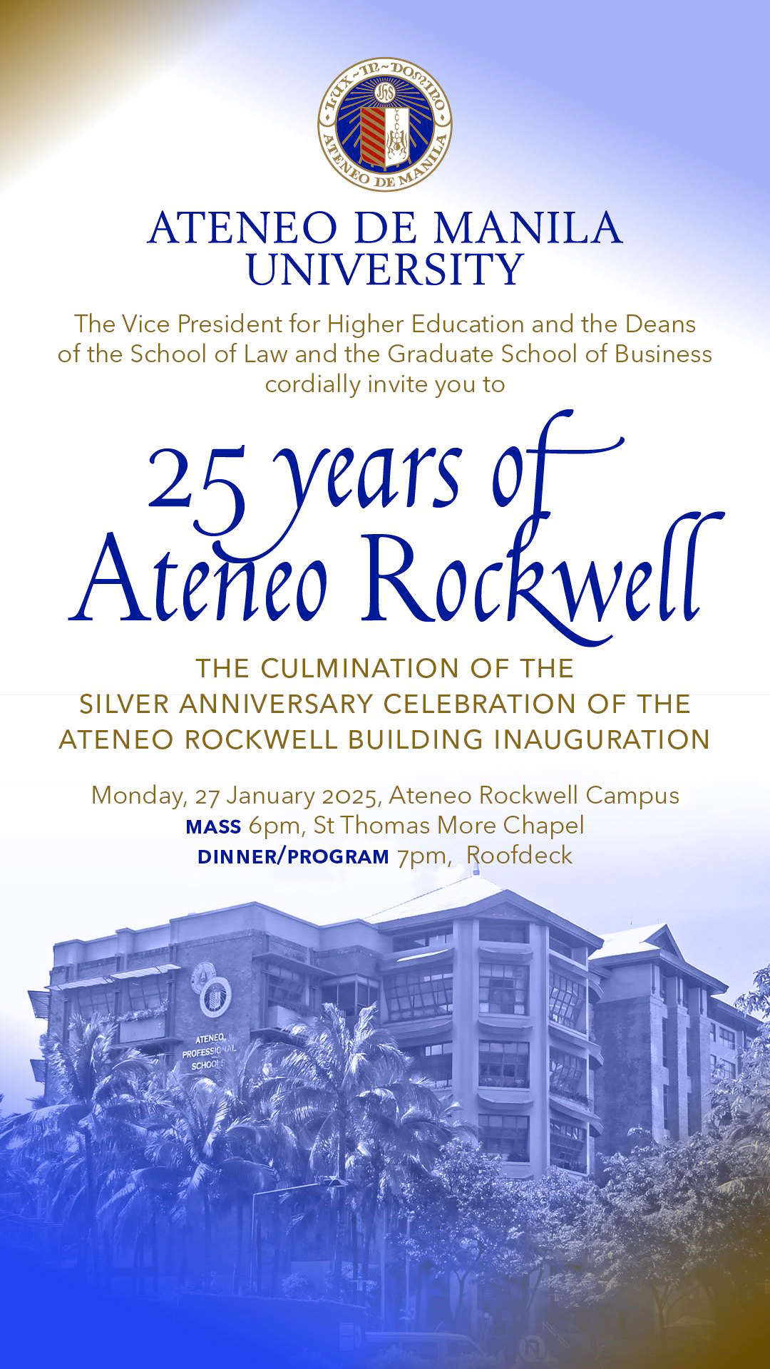 Join us as we begin the Jubilee Year of Hope and celebrate 25 years of fostering excellence and community in our Ateneo Rockwell Campus, inaugurated in 1999.