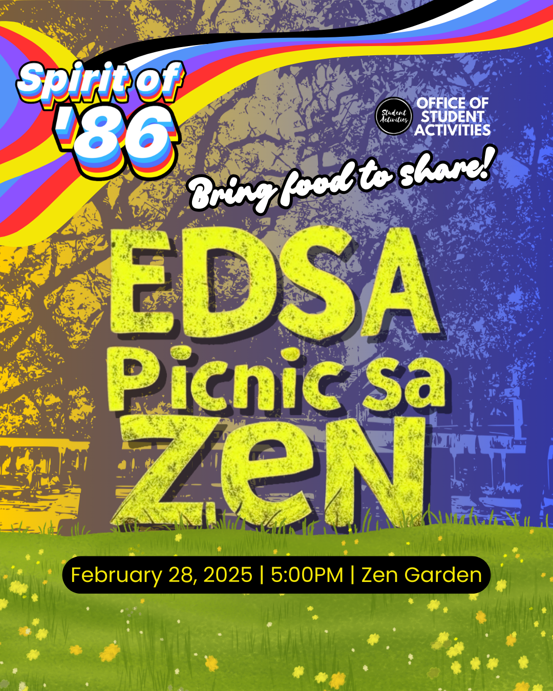 EDSA Picnic sa Zen is a gathering of students and community members for a reflective and inspiring kapihan session at the Zen Garden, commemorating the spirit of the EDSA People Power Revolution. This event provides a space for open conversations on pressing social issues, democracy, and active citizenship—ensuring that the legacy of EDSA continues to empower the youth today.
