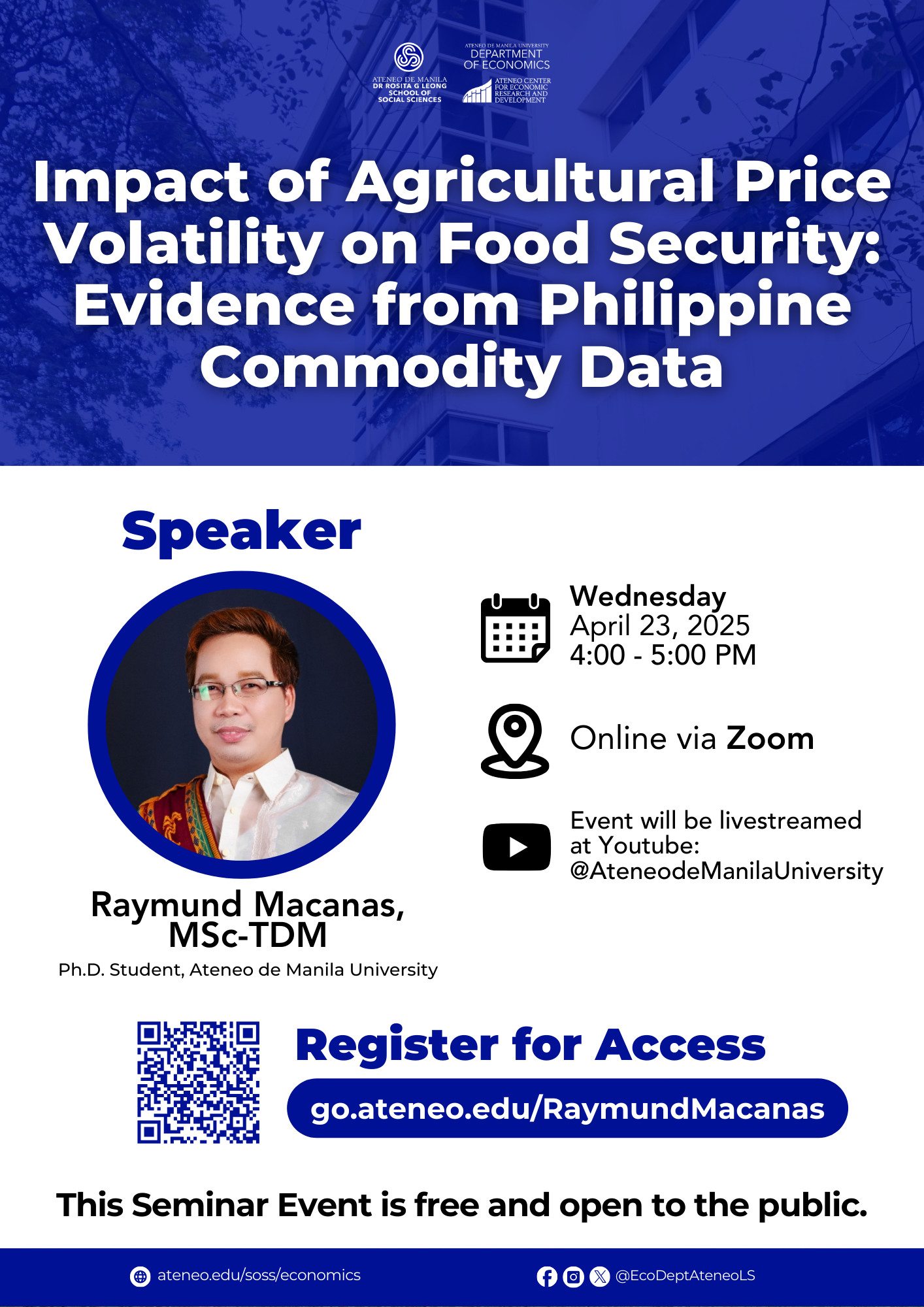 Raymund G. Macanas is a Ph.D. in Economics student at the Ateneo de Manila University and an Assistant Professor at the UP Asian Institute of Tourism. His research interests include impact evaluations, development planning, tourism economics, modernizing government regulations, tourism data analytics, investment planning, and quality and productivity improvements in the public sector.