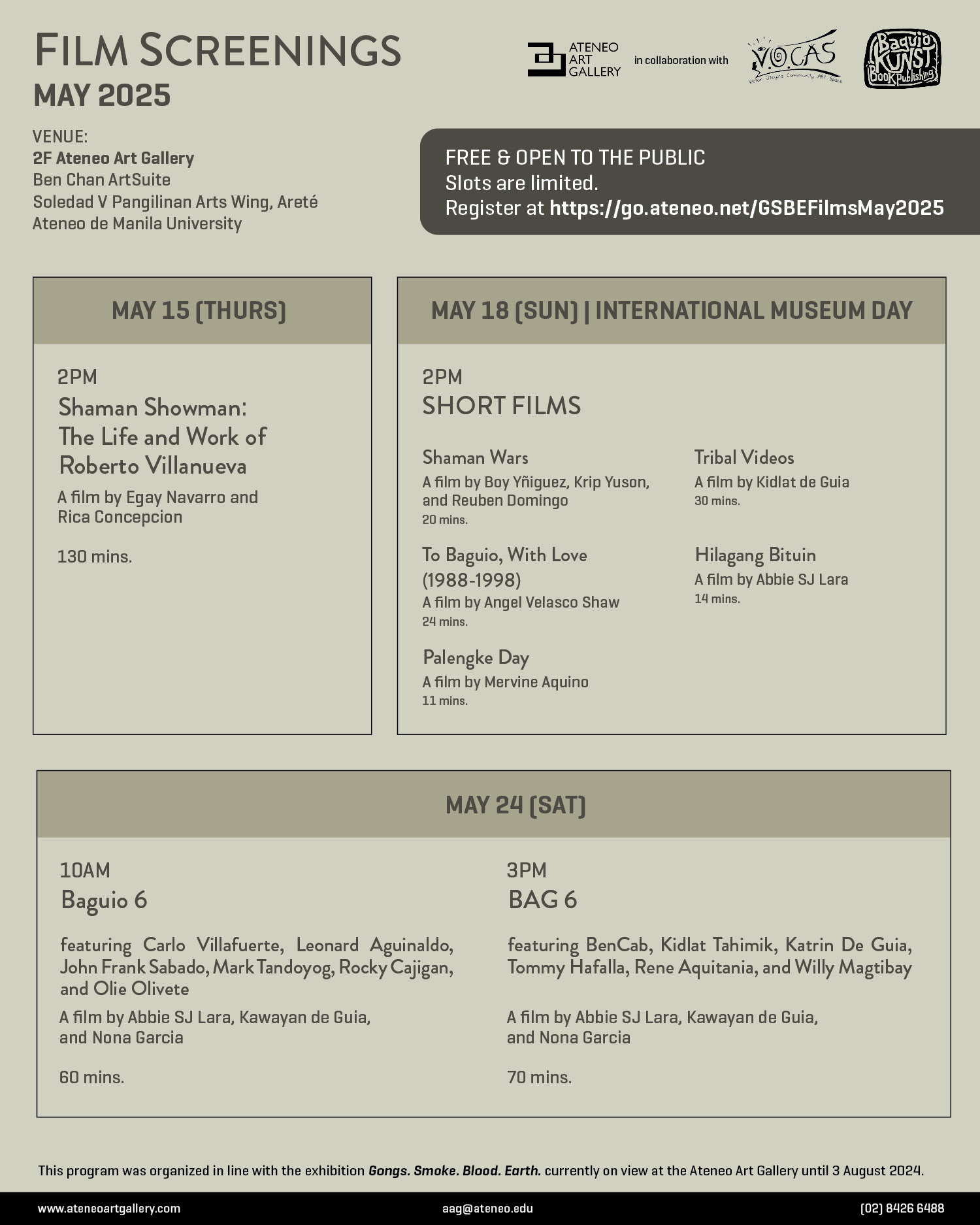 In celebration of International Museum Day (IMD) this May 18, the Ateneo Art Gallery presents a series of film screenings featuring the works of Baguio-based filmmakers and artists. Aligned with the 2025 IMD theme “The Future of Museums in Rapidly Changing Communities,” the program will feature eight films that explore the rich landscape of the Baguio art scene.