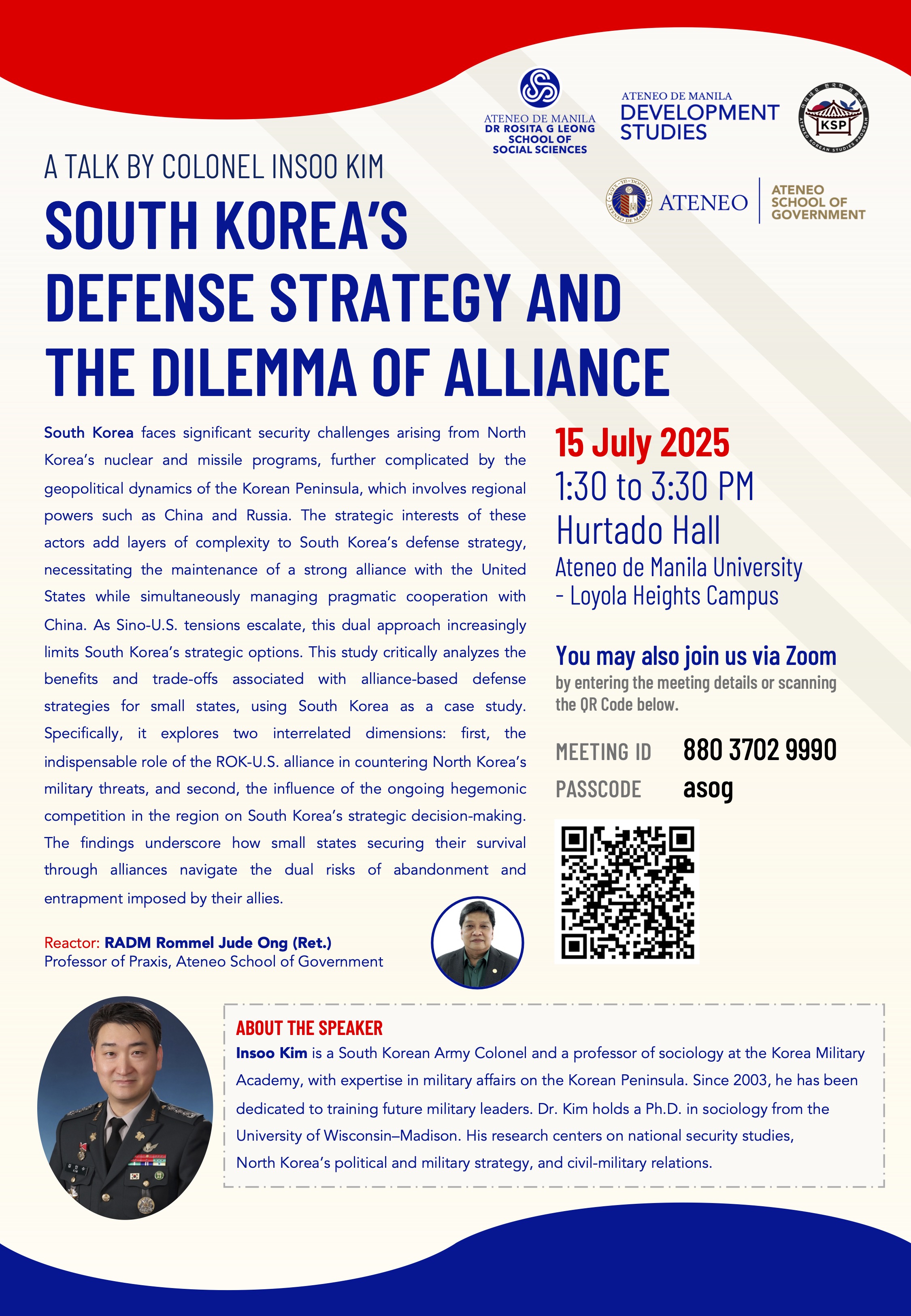 "South Korea's Defense Strategy and the Dilemma of Alliance: A Talk by Col. Insoo Kim of the Korea Military Academy."