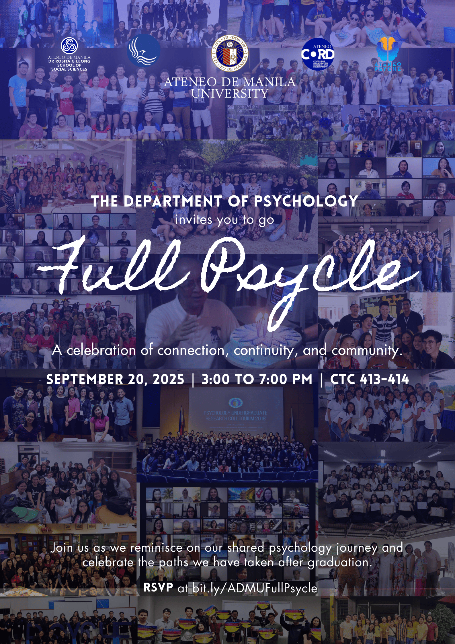 Join us on Saturday, September 20, 2025, at CTC 413-414, from 3:00 to 7:00 PM for a gathering of heartfelt conversations, shared stories, laughter, and renewed bonds as we come full psycle. We’d love to see you.