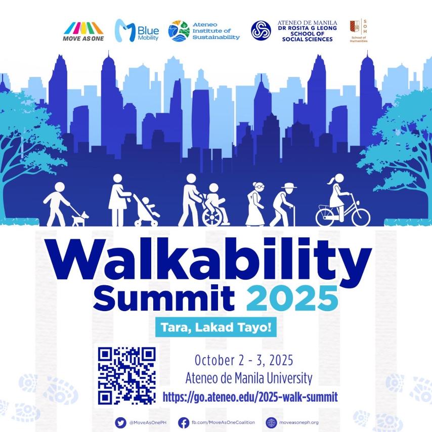 The School of Humanities, Dr Rosita G Leong School of Social Sciences, Ateneo Institute of Sustainability, and Blue Mobility, in partnership with the Move As One Coalition, invite the University Community to the Walkability Summit 2025.
