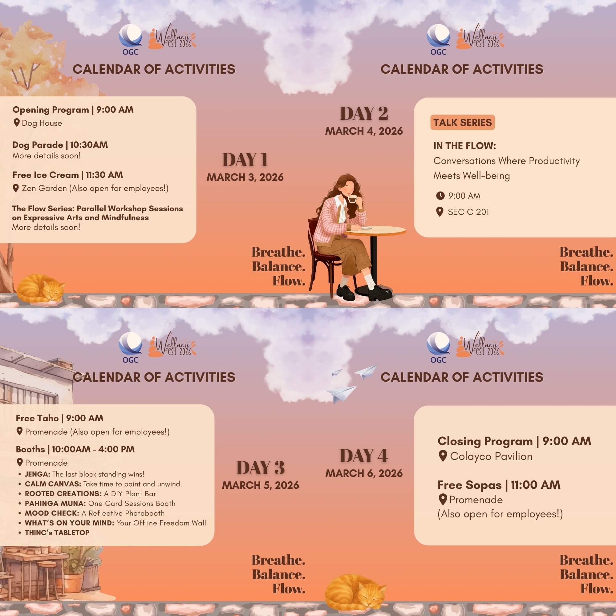 Breathe, Balance, Flow – Paghinga Tungo sa Patuloy na Pagdaloy is the theme of the AdMU OGC Wellness Fest 25-26, an annual four-day celebration dedicated to promoting mental health, inclusion, and holistic well-being within the Ateneo community.