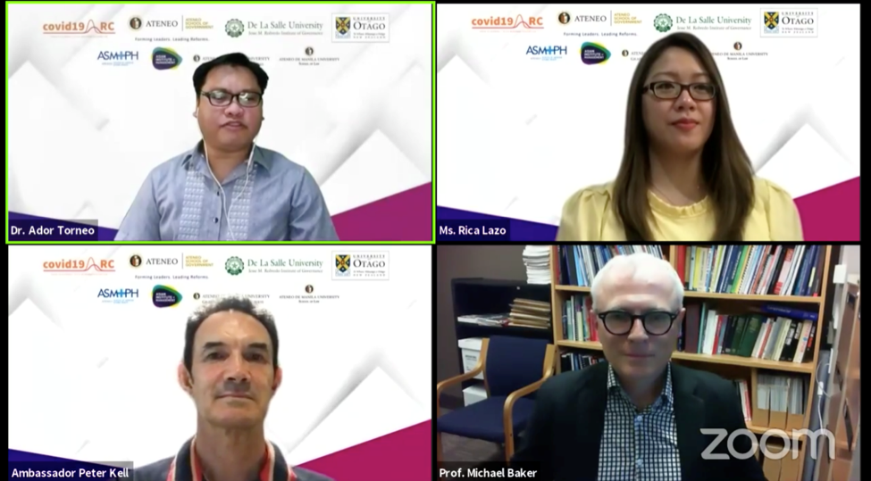 Last July 30, 2020, the Academic Crisis Response Consortium (see https://covid19arc.ph), a collaboration among the Ateneo Professional Schools, the AIM Zuellig School of Development Management, and the DLSU Jesse M. Robredo Institute of Governance, held Part 3 of a series of Best International Practices, titled “The Fight Against COVID-19: Lessons from New Zealand.”