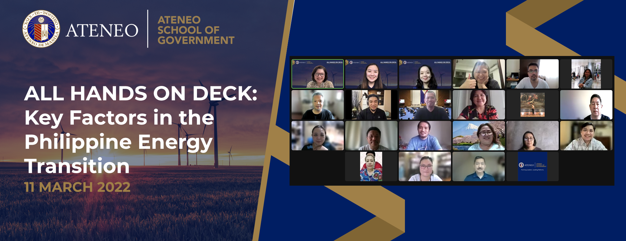 The Ateneo School of Government, through its Executive Education Program, recently conducted a closed-door Energy Transition Workshop entitled “All Hands on Deck: Key Factors in Philippine Energy Transition” last 11 March 2022 from 9:00 am to 12:00 nn. The event was attended by 32 legislative staff from both houses of Congress, representing the committee on energy, climate change, natural resources, and indigenous cultural communities and indigenous peoples, among others.
