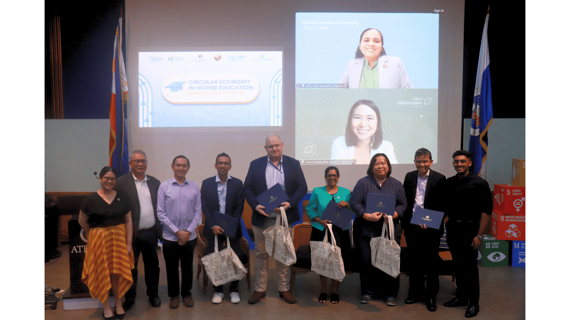 On September 25, 2024, a hybrid public plenary and sustainability forum titled “Circular Economy in Higher Education: Our Pact for the Future” was organized by the Ateneo Institute of Sustainability (AIS), together with the United Nations University - Institute for the Advanced Study of Sustainability (UNU-IAS), De La Salle University (DLSU, Philippines), Sustainable Development Solutions Network Philippines (SDSN PH), and Promotion of Sustainability in Postgraduate Education and Research Network (ProSPER.Net). The event was held both onsite at Escaler Hall and virtually via Zoom.