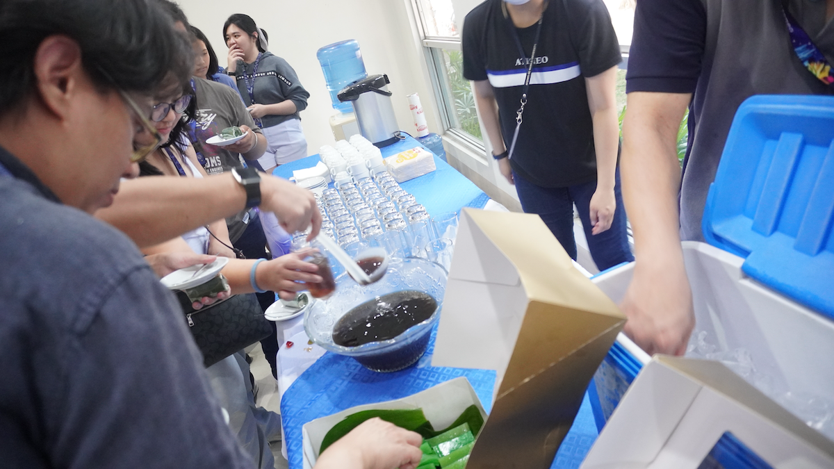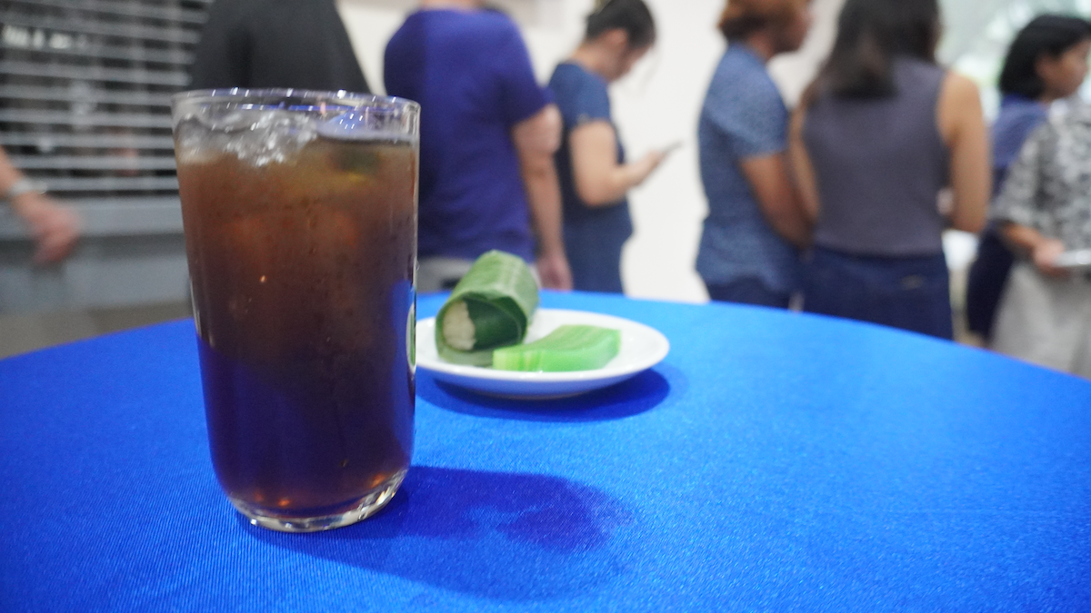 Following this, the group moved to the Leong Auditorium's foyer for snacks consisting of lemper ayam (sticky rice rolls filled with chicken floss) and lupis kukus (steamed glutinous rice cake) alongside Filipino sago't gulaman.