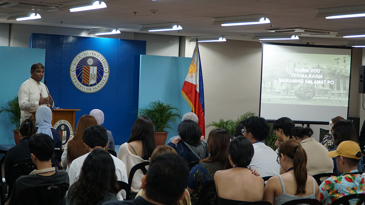 Before the lecture, H E Castelino paid a quick courtesy visit to Ateneo de Manila University President Fr Roberto C Yap SJ. Accompanying the Ambassador were Ms Nadhira Mohammad Zanudin, Counsellor at the Embassy of Malaysia; and Ms Nurfarahliza Putri Naaim Yazid, Counsellor at the Embassy of Malaysia.