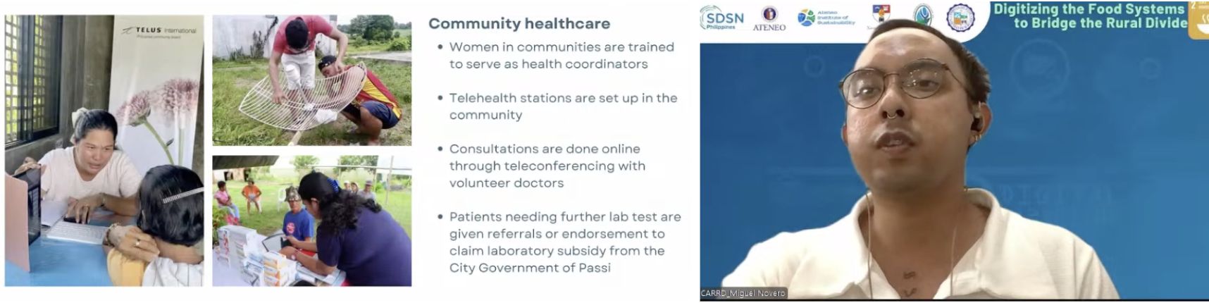 Leandro Miguel Novero, Research and Communications Officer for the Center for Agrarian Reform and Rural Development (CARRD), demonstrated how technology supports rights and services. Through participatory Geographic Information Systems, communities can resolve land title overlaps and track agricultural projects, such as sugar greenway survival across 16 barangays. Furthermore, their telehealth partnership with the University of San Agustin and Pasig City LGU has facilitated over 500 consultations for farmer-patients, providing vital medical access to remote areas.