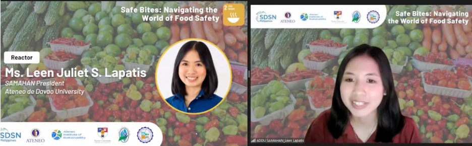 Leen Julie S. Lapatis, SAMAHAN President, Ateneo de Davao University, noted that as a student nurse, she realized healthcare must begin with promoting health education regarding food safety systems.