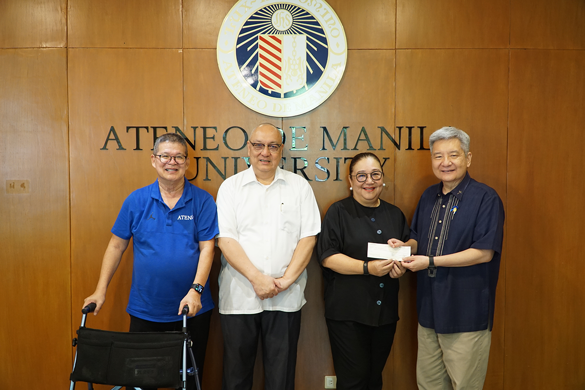 Receiving the donation on behalf of Ateneo de Manila were Fr Roberto C Yap SJ, University President; Fr Norberto Bautista SJ, Director Office of University Development and Alumni Affairs; and Fr Nemesio Que SJ.