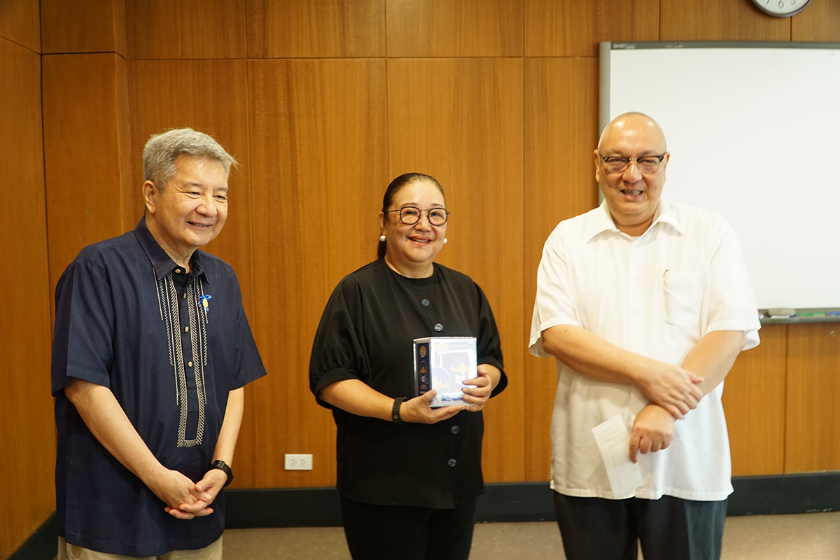 During the meeting, Fr Yap presented Mrs Santos with a token, a Funko Pop! College Blue Eagle figure, as a symbol of the University's gratitude for her donation, as well as a certificate recognizing her contribution. Following the meeting, a simple merienda was served during which Mrs Santos regaled everyone with stories of Arben's life and involvement with the team.