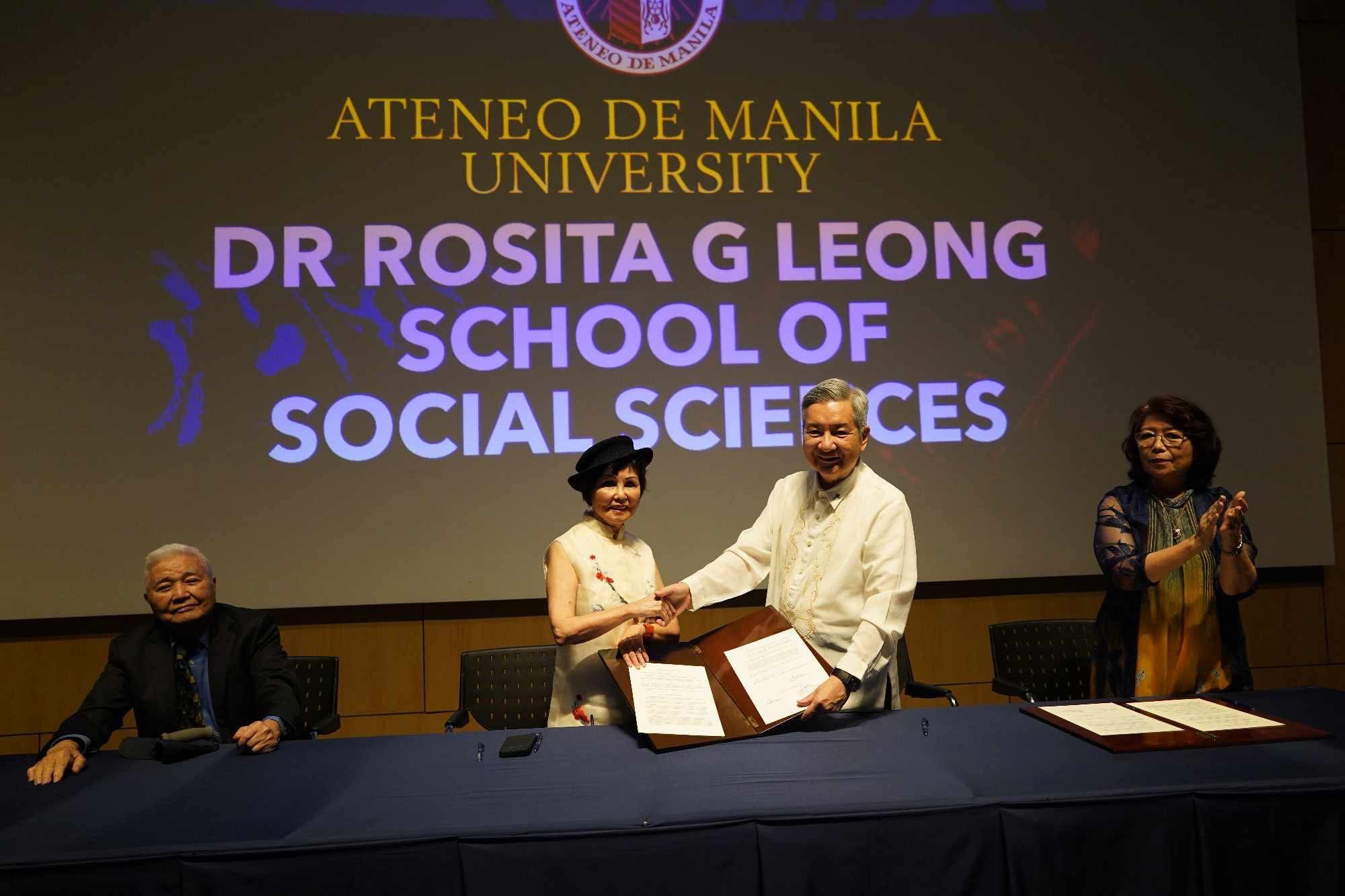 In a momentous event held on 8 December 2024, at the Leong Hall, a memorandum of agreement (MOA) was signed between Ateneo de Manila University, represented by its President, Fr Roberto C "Bobby" Yap SJ; and philanthropist Dr Rosita G Leong. This agreement formally inaugurates the naming of the university’s School of Social Sciences as the Dr Rosita G Leong School of Social Sciences.