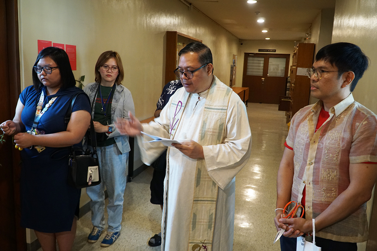 The mass was followed by a "ribbon cutting" ceremony where Fr Dy led the assembled crowd in a short prayer. In addition, LCSP director Dr Charlie Samuya Veric also gave some remarks on the opening of the office. He shared his dreams of making the space a productive and welcoming space for all, with the help of his colleagues Dr Oscar Campomanes; Ms Luisa Gomez, PLUME moderator; Ms Gabriela Martin; Dr Jocelyn Martin; Dr Vincenz Serrano; Mr. Francis Sollano, undergraduate and graduate coordinator; and Ms. Lovely Matore, the program secretary.