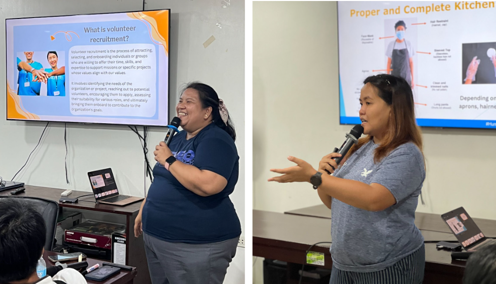 The training opened with a session on the importance of achieving Sustainable Development Goal (SDG) #2: Zero Hunger and the journey of Gawad Kalinga and GKA in responding to this call since 2014. This was followed by a session on volunteer management, recognizing that volunteers as the heart of the program. From there, the sessions focused on the operational standards of KnK, from food preparation to health and safety protocols, all geared toward ensuring quality, consistency and care in every meal served.