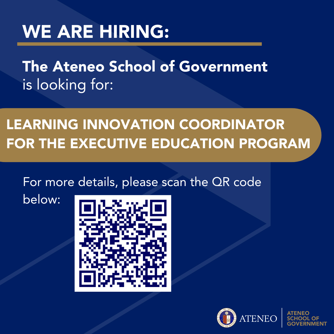 The Ateneo School of Government (ASoG) is committed to advancing public service and governance through a range of academic and professional development programs. In response to the growing demand for flexible, and skills-focused learning, ASoG is expanding its offerings to include microcredential courses. These courses aim to provide targeted, practical skills and knowledge in leadership, governance and public policy. The Learning Innovation Coordinator will play a key role in coordinating these programs, ensuring they meet the needs of learners and align with the strategic goals of ASoG. The Learning Innovation Coordinator will serve as the primary coordinator between ASoG and other stakeholders within and outside ADMU, ensuring the successful development and implementation of these courses.