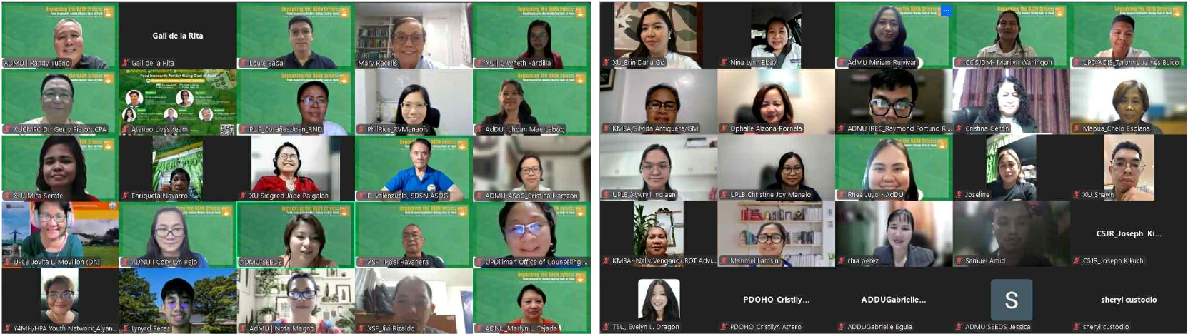 In response, Dr Gerry Plator from Xavier University Community Multi-Purpose Cooperative, shared how the institution partnered with its community to offer rice and subsidized rates. In addition, Ms. Jhoan Mae Labog from Ateneo de Davao University emphasized efforts to promote healthier diets through the implementation of Pinggang Pinoy and the restriction of junk food in school settings.