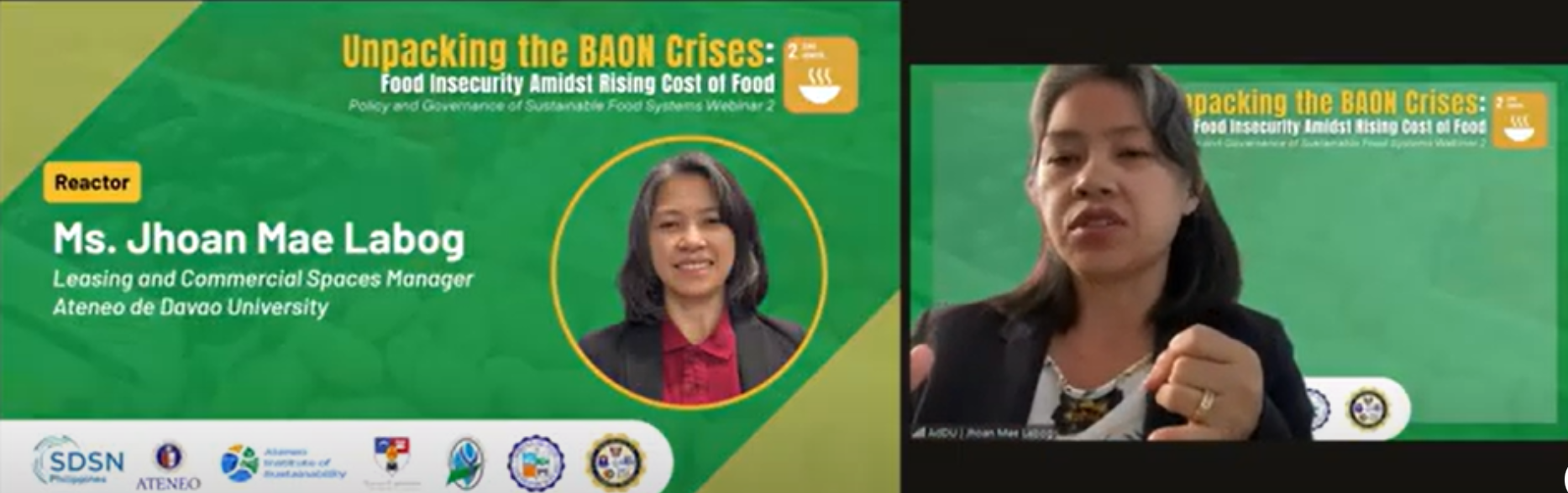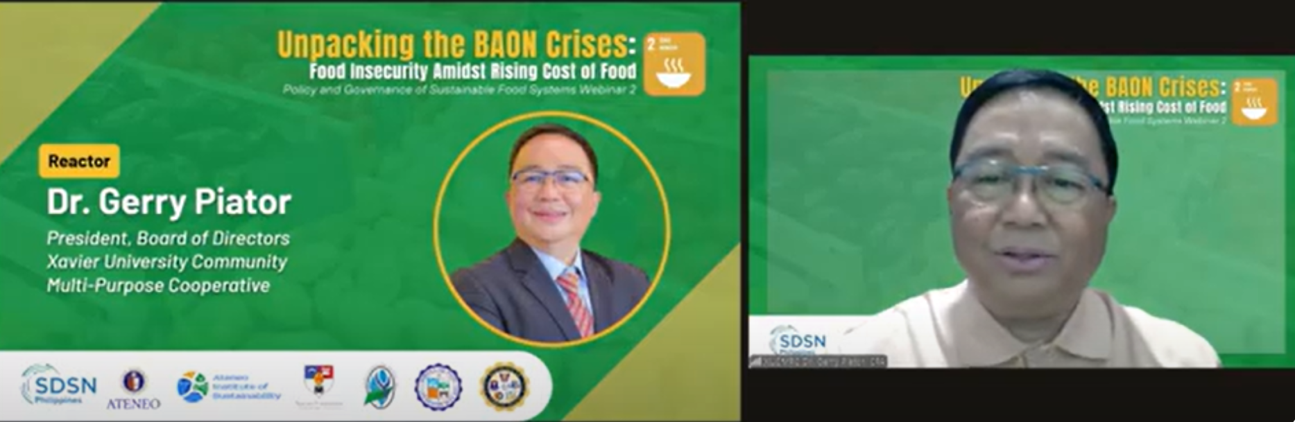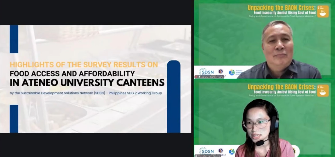 The webinar “Unpacking the BAON Crises: Food Insecurity Amidst Rising Cost of Food,” held on 24 June 2025, tackled the harsh realities behind rising food costs through the lens of Budgeting, Accessibility, Overpricing, and Nutrition (BAON). Led by the SDG2 Zero Hunger Project of the Sustainable Development Solutions Network Philippines (SDSN), Ateneo de Manila University, Ateneo de Davao University, Xavier University - Ateneo de Cagayan and Buklod Atenista, the discussion emphasized how food insecurity is shaped not just by scarcity, but by power, policy, and profit. From rice cartels to diskarte (strategy) in palengke (market), the conversation tackled how everyday hunger is a crisis we can no longer ignore.