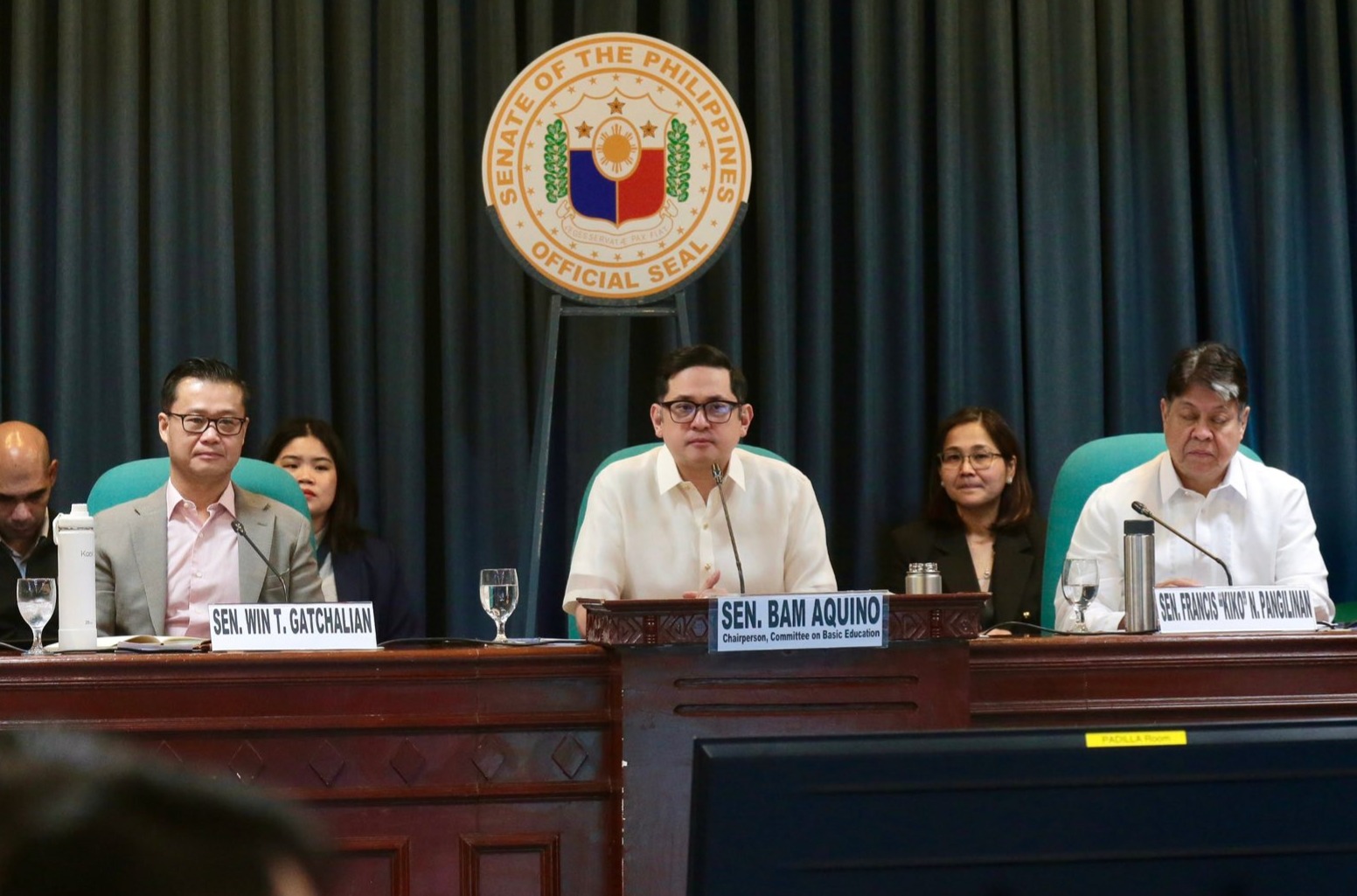 The session was led by Senator Bam Aquino, Chairperson of the Committee on Basic Education, along with Senator Kiko Pangilinan, Chair of the Committee for Food and Agrarian Reform, and Senator Sherwin Gatchalian, Chair for Finance, as well as representatives from the Department of Education (DepED), EDCOM 2, together with various key stakeholders and non-government organizations. The public hearing was held at the Sen. Ambrosio B Padilla Room at the Senate.