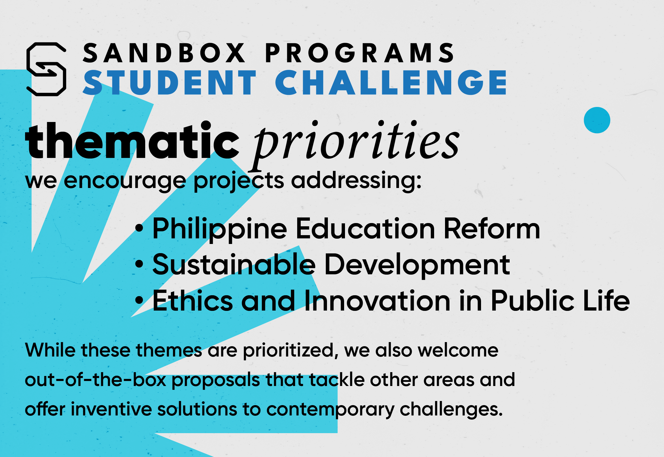 Areté's Sandbox Student Challenge invites visionary undergraduate and graduate students of Ateneo de Manila University to bring innovative ideas to life.