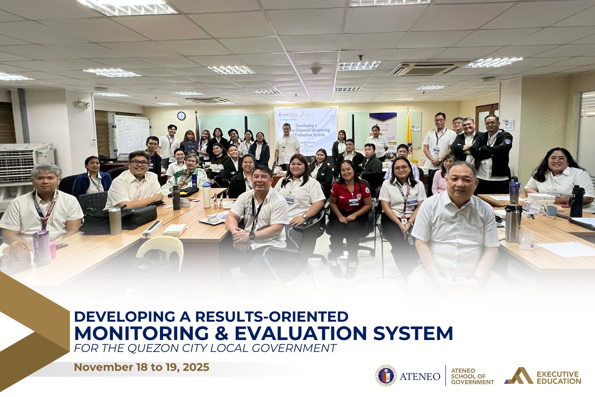 The Quezon City Local Government (QCG), together with the Ateneo School of Government (ASoG), through its Executive Education Program, conducted a training course on Developing a Results-Oriented Monitoring & Evaluation System from 18 to 19 November 2025, at the Quezon City Hall.