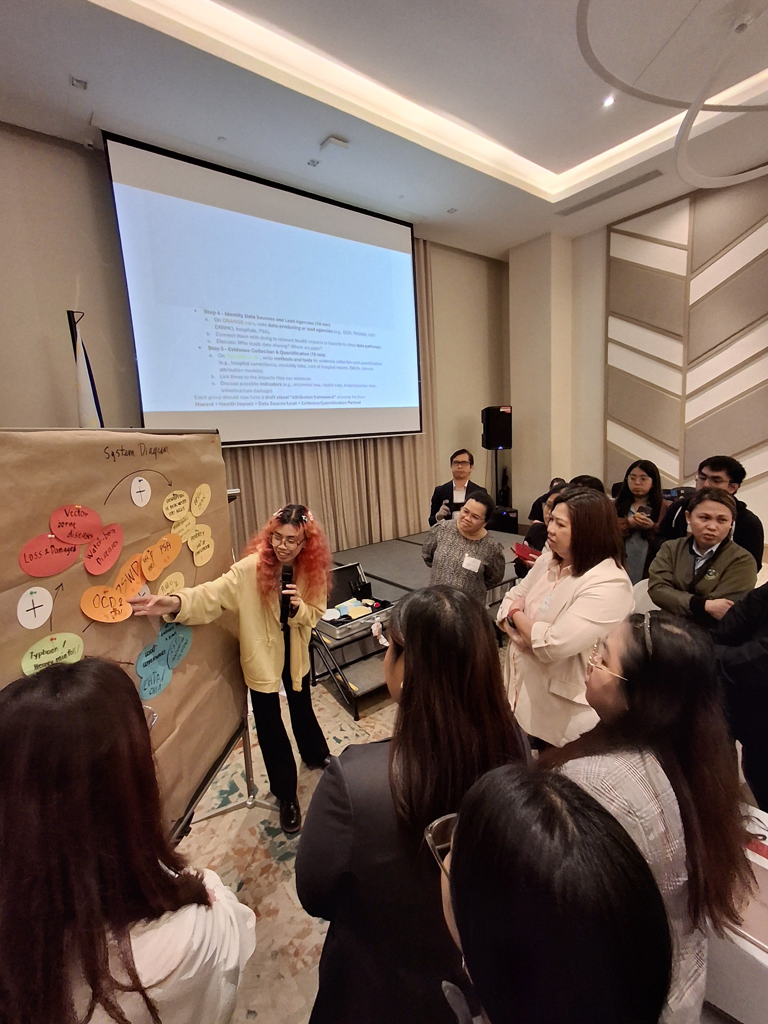 The need for attribution science in government policy becomes more apparent, as well as the need to incorporate aspects apart from economic impact when assessing the damages brought upon by climate change. As part of the workshop, the participants coming from the government, academe, non-government organizations (NGOs), and private sectors were asked to create a systems diagram that illustrated the impact of climate change on public health. Among the several groups, Mr Lomarda from AIS presented their output created in collaboration with a group consisting of people from the academe and private sector, which highlighted how climate change affects health services.