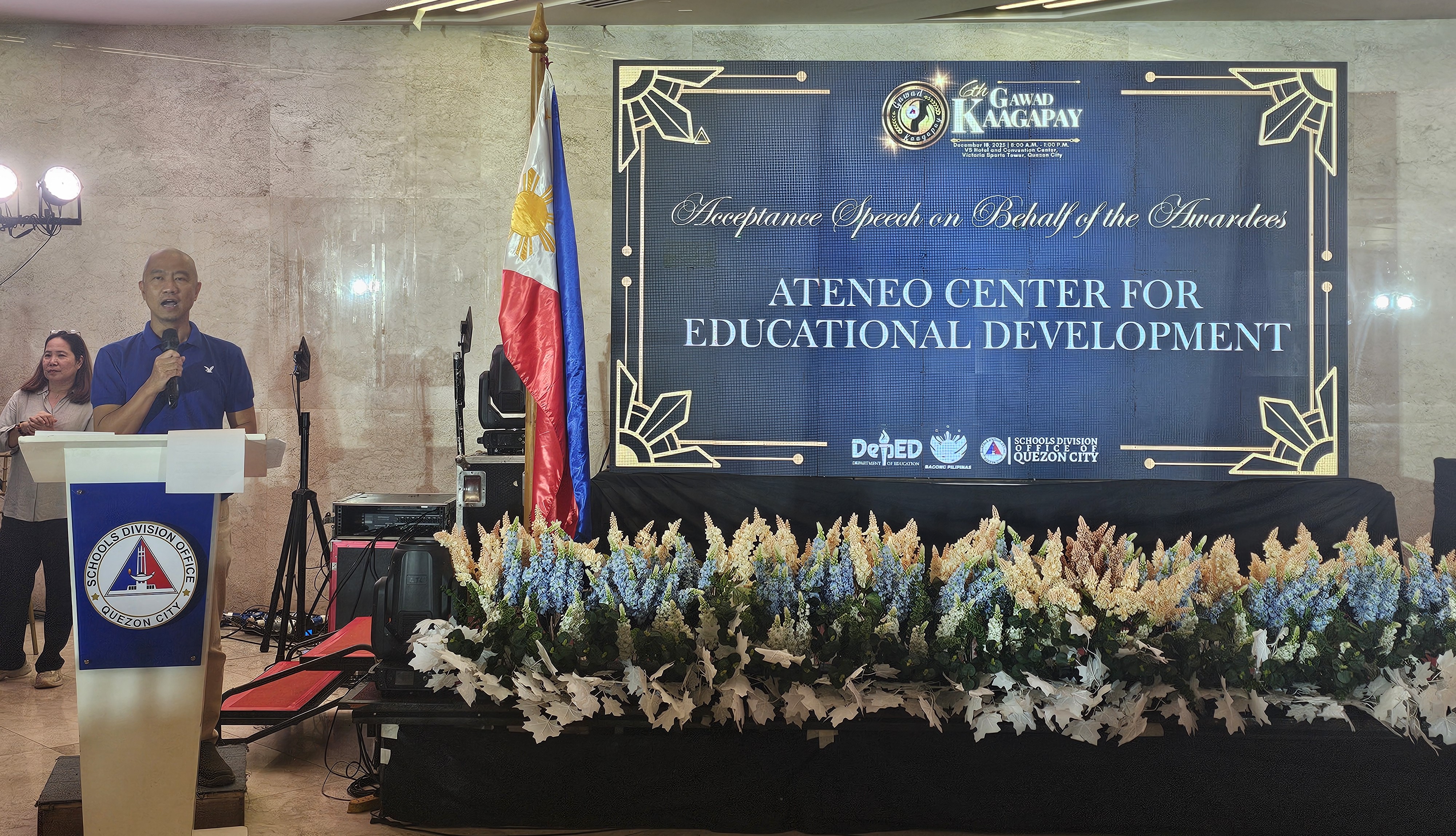 After years of being recognized as a consistent and outstanding partner in public education, the Ateneo Center for Educational Development (ACED) was formally elevated as an Exemplary Stakeholder by the Quezon City Schools Division Office during the 6th Gawad Kaagapay Award Ceremony, held on 18 Dec. 2025, at the VS Hotel and Convention Center, Victoria Sports Tower, Quezon City.