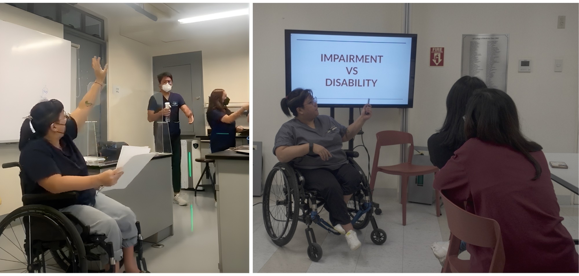 At ASMPH, she teaches clinical cases and handles clinical preceptorials, favoring interactive and collaborative discussions. At UP Manila, she teaches disability sensitivity and awareness for incoming interns, helping future doctors see persons with disabilities not just as cases, but as people with full lives, agency, and context.