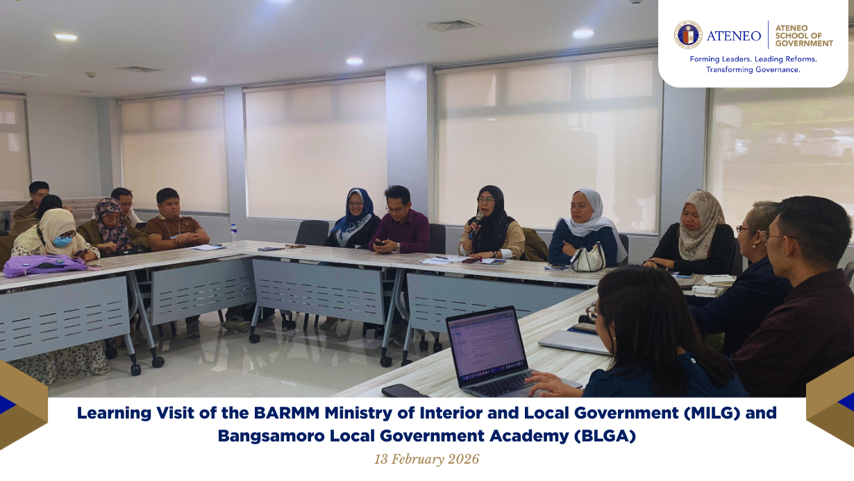 On 13 February 2026, the Ateneo School of Government (ASOG) hosted a delegation from the Bangsamoro Autonomous Region in Muslim Mindanao (BARMM) for a study visit to learn practical approaches that can guide the institutional strengthening and program design of the Bangsamoro government’s local governance academy.