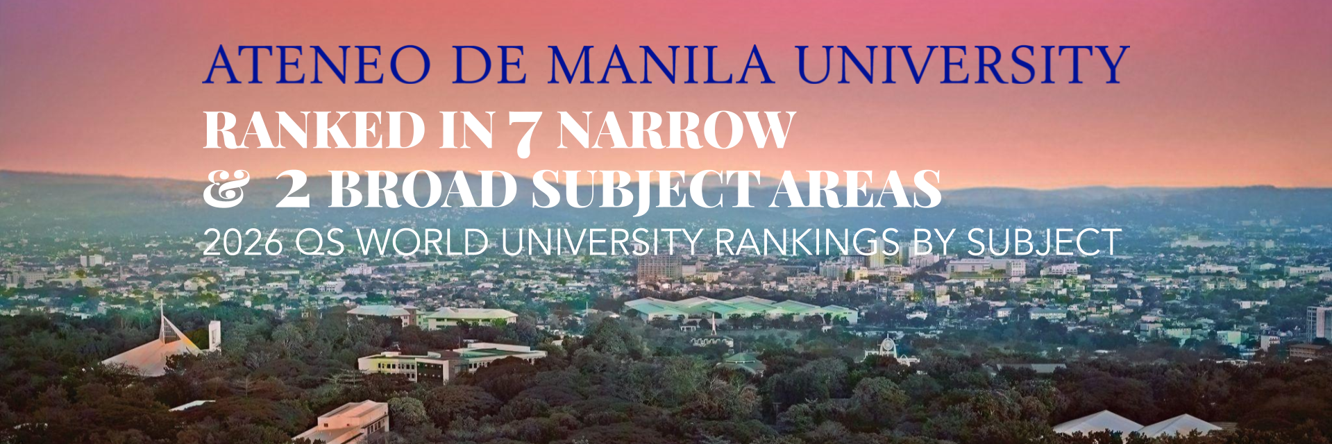 The 2026 edition of the subject-specific QS rankings table, released Wednesday, 25 March 2026, showed that Ateneo is among the world's best in the following Narrow Subject Areas: