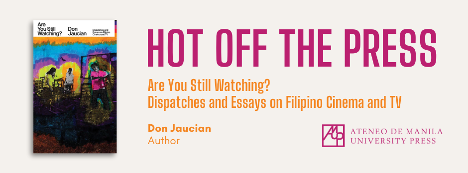 Are You Still Watching? Dispatches and Essays on Filipino Cinema and TV by Don Jaucian is published by the Ateneo de Manila University Press under the Bughaw imprint. The book retails at PHP 625 and is available at the Ateneo University Press Bookshop in Bellarmine Hall, and the Press’s official Lazada and Shopee stores.