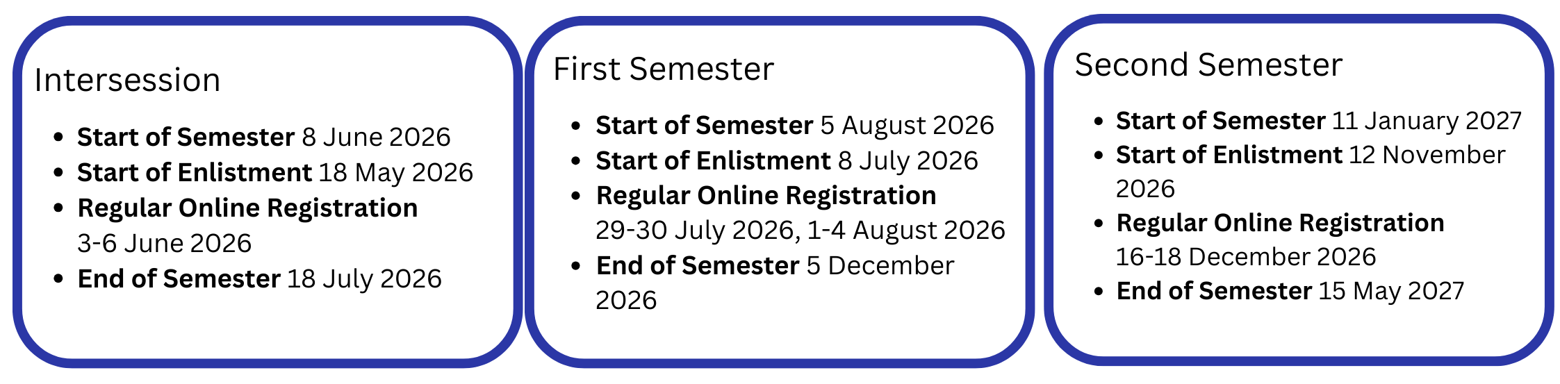 | Orientation Seminar (ORSEM) | N/A | 3 - 4 August 2026, Monday - Tuesday |